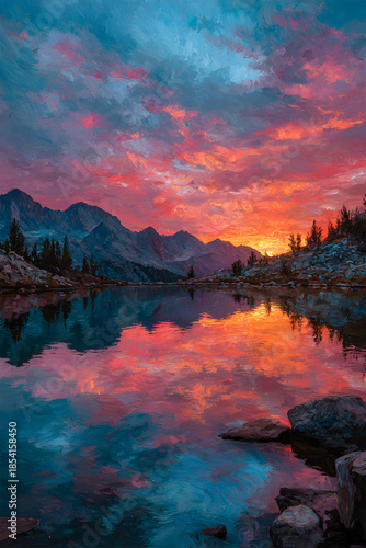 sunset, mountain, lake, sky, nature, evening, landscape, cloud, peaceful, serene, pink, orange, purple, water, mountain, dusk, calm, scenery, tranquil, hue, paint, shade, majestic, background