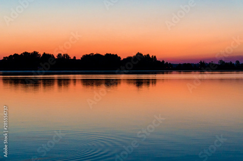 Sunset over "Nove Mlyny" water reservoir, South Moravia, Czech Republic