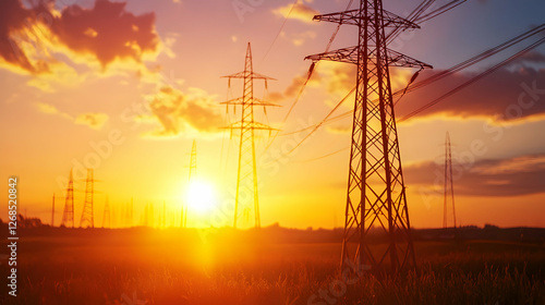 ray, serene, infrastructure, peaceful, tranquil, dramatic, glow, vibrant, warm, electricity, horizon, silhouette, structure, calm, atmospheric, industrial, energy, gold, rural, scenic, evening, light, technology, sun, orange, red, sunset, cloud, sky, texture, pattern, yellow, colours, line, field, bright, nature
