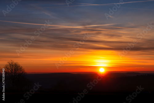 sunset, sky, sun, cloud, orange, landscape, nature, sunrise, evening, cloud, dusk, red, horizon, beautiful, night, blue, yellow, summer, tree, light, beauty