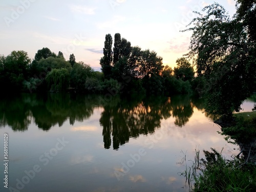 water, lake, river, sky, nature, landscape, summer, tree, blue, tree, green, forest, park, duck pond, cloud, outdoors, cloud, wood, morning, grass, sunrise, autumn, sun, peaceful