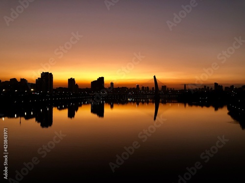 sunset, water, lake, sky, sun, landscape, sunrise, nature, river, cloud, evening, dusk, night, silhouette, orange, summer, beautiful, duck pond, cloud, city, blue, red, morning
