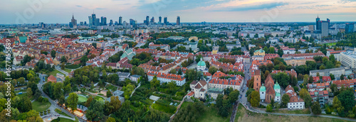 Sunset panorama of Warsaw in Poland