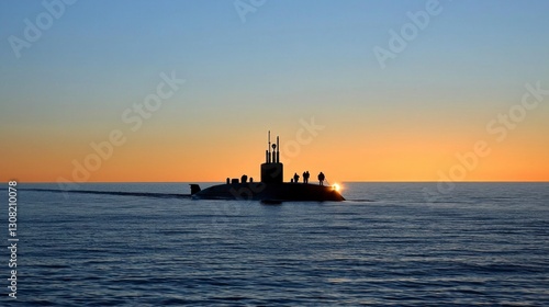 submarine, ocean, sea, sunset, silhouette, naval, military, ship, vessel, water, horizon, twilight, dusk, marin, underwater, deep sea, travel, transportation, exploration, adventure, journey, calm, peaceful, serene, solitude, nature, power, technology, engineering, defense