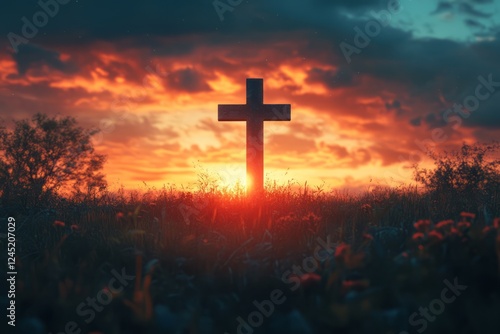 cross, sunset, silhouette, field, grass, sky, cloud, orange, red, nature, peaceful, serene, religious, faith, hope, belief, spiritual, landscape, photo, image, picture, beautiful, scenic, vibrant, colours, calm, tranquil, evening, twilight, dark, light, god, jesus christ, christianity, religion, symbol, summer, spring, autumn, divine, holy, heaven