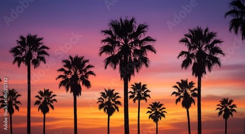 sunset, palm tree, silhouette, sky, cloud, orange, pink, purple, vibrant, tropical, evening, dusk, colours, nature, scene, landscape, horizon, warm, beautiful, tree, summer, light, silhouette, flora, outdoors, gold