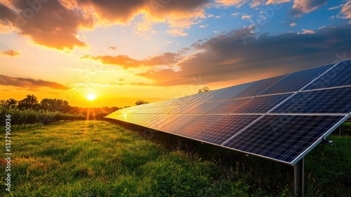 solar, panel, energy, renewable, power, sunset, sun, sky, field, grass, green, nature, clean, alternative, technology, electricity, sustainable, environment, eco, friendly, bright, horizon, cloud, orange, yellow, red, light, beautiful, landscape, rural, farmland, summer, day, photovoltaic, cell, industrial, plant, generation, future, global