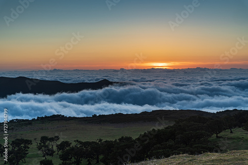 madeira, portugal, sunset, sun, sky, cloud, meadow, tree, forest, mountain, hill, orange sky, nature, landscape, scenic, scenery, evening, travel, travel destination, tour tourism, outdoors, vacation, hiking, hike, trekking, trek, landmark, famous place