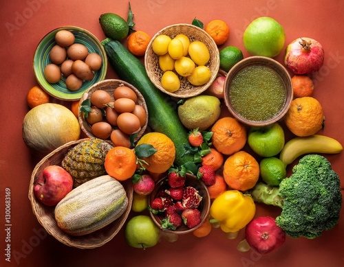 supermarket food waste fruits vegetables top view