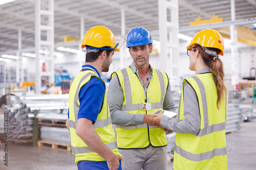 supervisor, men at work, talk, steel, factory, adult, class, colleague, cooperation, co-worker, negotiate, equipment, expertise, explain, generation, health, indoor, industry, line, listen, machinery, man, manager, manual, manufacturing, mature, meeting, mid, occupation, occupational, people, production, protection, protective, responsibility, safety, skill, teamwork, three, togetherness, warehouse, woman, work, workwear, young