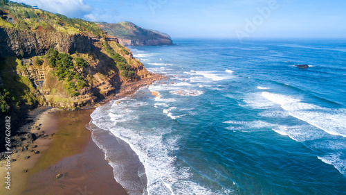 sea, ocean, coast, beach, landscape, water, blue, sky, nature, coastline, island, shore, rock, wave, summer, cliff, travel, view, wave, bay, sand, rock, hawaii, seascape, mountain, new, auckland, north, terrain, grass, ecology, ecosystem, aerial, elevated, drone, remote, tour tourism, location, exotic, green, yellow