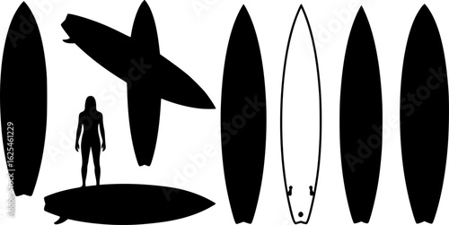 Surfboard vector set, surfing silhouettes, surfboard silhouettes, ords