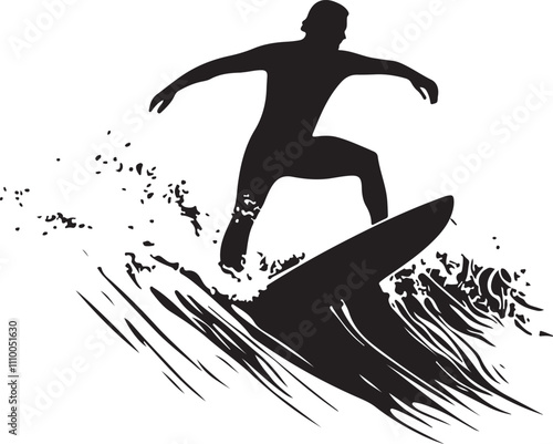 "Surfer Riding Waves Vector Design"