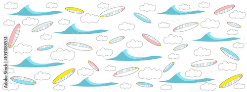 abstract background, artwork, background, beach, blue, board, border, breeze, business, cartoon, cloud, club, coastline, color image, concept, conceptual, copy space, cyan, design, frame, freedom, funky, icon, idylli, illustration, layer, lifestyle, ocean, paddle, palette, pastel, patterned, playful, relaxation, repetitive, retro, sport, stylish, summer, surf, surfboard, surfing, travel, vacation, wallpaper, wave, yellow