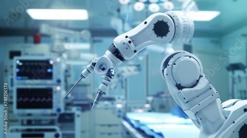 Surgical robotic arm operates with precision in a modern, sterile medical laboratory environment