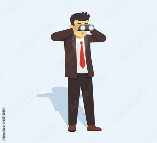 suit, standing, company, men at work, manager, hiring, search, view, office, planing, goggles, seeking, holding, clip art, cartoon, graphic, design, explorer, flat, young, watch, people, marketing, job, male, idea, discovery, adult, through, glasses, vision, career, shocked, opportunity, find, isolated, front, perspective, man, business, binocular, financial, corporate, work, person, character, employee, businessman, illustration, vector