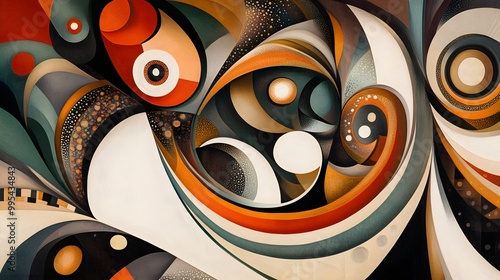 Surreal and beautiful abstract composition featuring intricate geometric patterns and strange organic shapes in contemporary colors