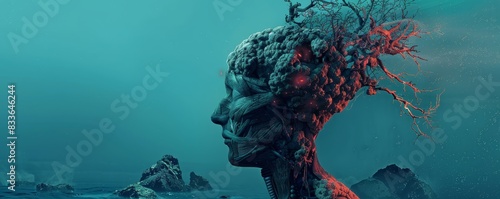 surreal, artwork, stone, like, human, head, merge, natural, element, moody, headpiece, craftsmanship, illusion, scenery, expression, artistry, aethereal, harmony, landscape, texture, intricate, aesthetic, inspire, artistic, conceptual, eccentric, bizarre, visual, creative, ornate, concept, symbolic, organic, stunning, mythical, fantasy, imaginative, impression