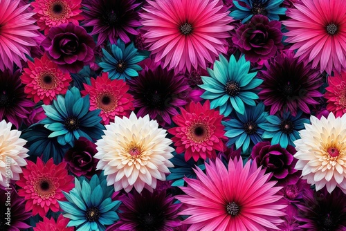 surreal, artistic, nature, flora, decoration, imaginative, bold, eclectic, garden, creativity, vibrant, seasonal, design, contemporary, pattern, wallpaper, vector, object, ornament, bloom, flower, ai, beauty, experimental, texture, illustration, seamless, fabulous
