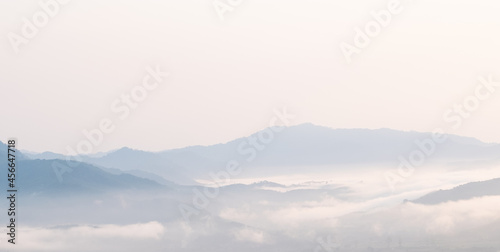 Surreal landscape of morning foggy..Morning clouds at sunrise.Landscape of fog and mountains of northern Thailand.