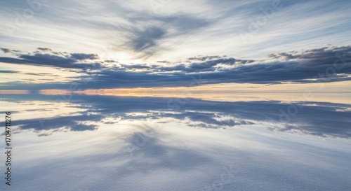 water, sky, cloud, nature, landscape, serene, calm, tranquil, peaceful, blue, white, horizon, scenic, aethereal, atmospheric, texture, mirror, expanse, open, huge, light, airy, space, dream, abstract, smooth, surface, ripple, clear, environment, view, background, climate, weather, pristine, untouched, stillness