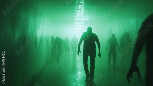 Survivor's Standoff in Dark Room Against Zombie Outbreak with Cinematic Lighting