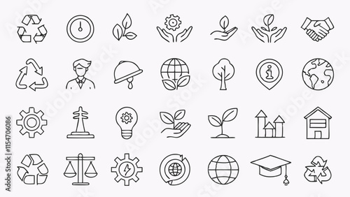 Sustainability and Community Support Line Art Icon Set,ESG, Environmental,Social,Governance line icons set,net zero,climate crisis,recycle,electric car, collection,humanity,economy,Vector illustration