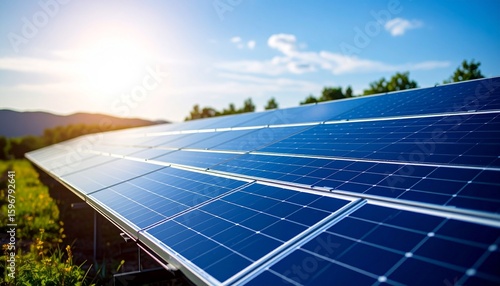 Sustainable Solar Energy Panels in Scenic Landscape.