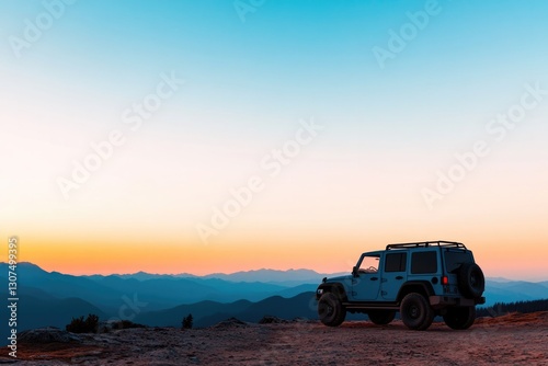 suv, parked, rugged, trail, mountain, distance, adventure, exploration, capture, vehicle, vibrant, sunset, lighting, casting, long, shadow, ground, offering, sense, freedom, fisheye, lense, encompass, expansive, landscape, composition, balanced, foreground, leading, line, guiding, viewer, gaze, into, horizon, natural, element, like, tree, rock