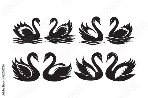 Swan silhouette vector illustration, Swan silhouette vector Bundle, Swan silhouette bundle