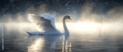 cygnet, water, mist, wing, nature, bird, lake, white, elegant, sunlight, morning, beauty, serene, peaceful, aquatic, graceful, feather, landscape, wildlife, animal, purity, calmness, idylli, dreamy, aethereal, natural, scenic, outdoors, environment, light, sun, dawn, wetland, floating, swimming, avian, mystical, calm, pristine, unspoiled, undisturbed, isolated, captivating, artistic, breathtaking, stillness