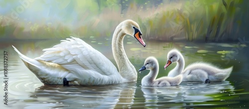 cygnet, swimming, water, together, lake, serene, peaceful, aquatic, wildlife, harmonious, nature, elegant, white, bird, couple, tranquil, blue, environment, spring, summer, natural, scenic, seamless, isolated, no people