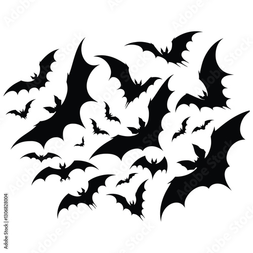 Swarm of Flying Bats Silhouette – Spooky Halloween Vector Illustration for Horror Designs