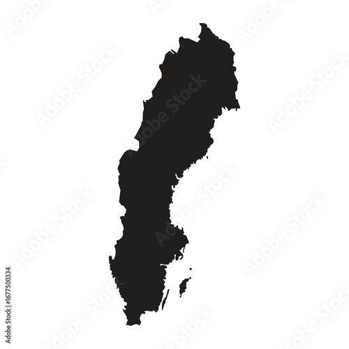 sweden, map, silhouette, country, europa, scandinavia, travel, geography, outline, black, vector, illustration, nation, graphic, territory, border, land, state, area