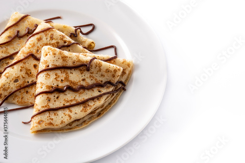 Sweet crepes with chocolate isolated on white background.