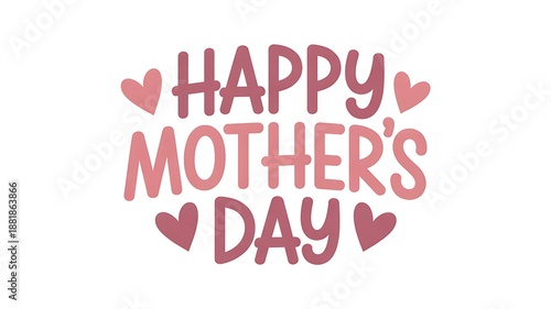 Sweet Happy Mothers Day lettering featuring shades of pink and small hearts