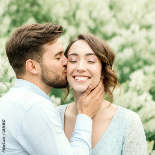 sweet, kiss, cheek, romantic, spring, couple, embracing, garden, love, happiness, affection, blooming, nature, outdoors, smile, engagement, celebration, intimacy, human relationships, floral, tenderness, joyful, serene, white, flower, cheerful, bonding, warmth, gentle, peaceful, greenery, harmony, blissful, caring, delightful, background, relaxing, bright, tranquil, beauty