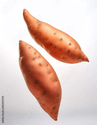 Sweet potato floating or flying isolated white background
