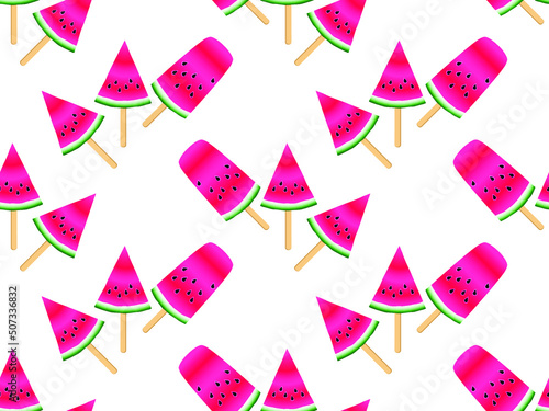Sweet watermelon slice ice cream vector illustration seamless pattern. Valentine's Day print. Summer diet. Isolated red and green water melon fruit ice cream. Vector dessert watermelon berry dessert.