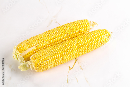 Sweet yellow raw corn cob