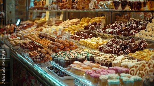 Sweets Display: A visually appealing display of various confections, including pastries, in a shop