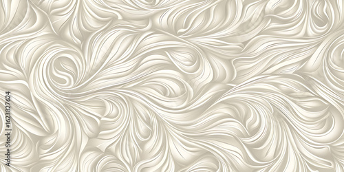Swirling feather-like patterns in soft beige tones forming an elegant abstract design