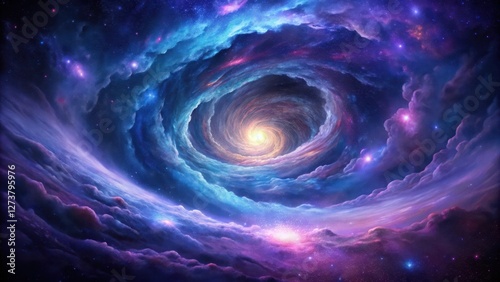 Swirling vortex of purple and blue gas clouds amidst a vast expanse of starry darkness, cosmic, space, cosmic
