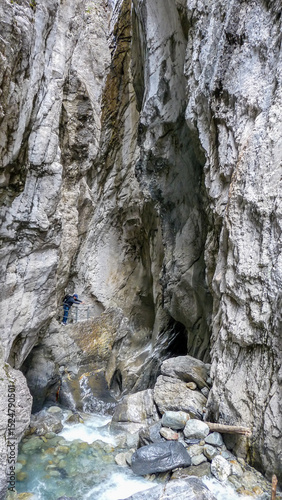 backpack, bedrock, cave, city, fractured, geology, holiday, narrow, outcrop, picturesque, plant, stream, switzerland, terrain, travel, adult, adventure, cliff, exploration, extreme sport, hiking, landscape, man, mountain, mountain climbing, nature, object, one person, outdoors, rock, rock climbing, rope, sport, stone, summer, tour tourism, holiday maker, tree, vacation, water, close