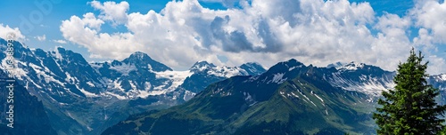 Switzerland, Panoramic view on green Alps from Schynige Platte