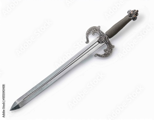 Sword or Rapier isolated on white background, Sliver sword with long blade on White Background With clipping path