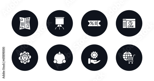 symbol for mobile filled icons set. filled icons such as gazette, marketing presentation, coupon, crm, potential, diversify, service, web shop vector.