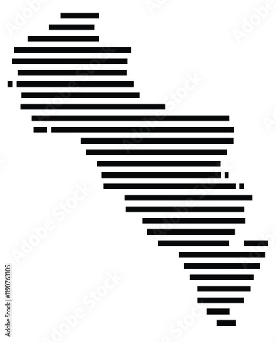 Symbol Map of the Island Andros (Greece) showing the island with horizontal black lines