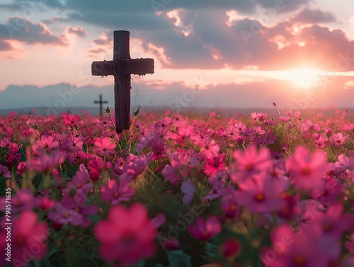 Symbol of Faith: A Field of Flowers Under the Setting Sun