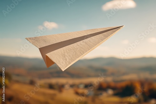 Symbolic Paper Plane Flying High in Bright Blue Sky